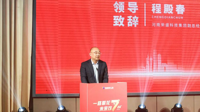 一路繁花,未來可期。10月25日,鄭州榮盛窯爐工程技術有限公司成立七周年慶暨王海軍總經理入職六周年紀念活動在魯班喜悅酒店隆重舉行。河南榮盛科技集團董事長楚科奇、總經理王海軍、特邀嘉賓、集團管理層及工程項目部員工等70余人出席了活動,共同回顧榮盛窯爐工程公司七年的輝煌歷程,并展望公司更加絢爛的未來。