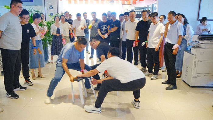 「搶椅子」游戲里,伴著歡快的音樂,選手們一邊走動一邊緊盯椅子,眼神充滿警惕。音樂戛然而止的瞬間,大家如離弦之箭沖向椅子,現場一片混亂卻趣味十足。觀眾們屏氣凝神,不時為驚險的搶座瞬間發出驚呼聲,緊張刺激的氛圍讓全場熱情高漲。